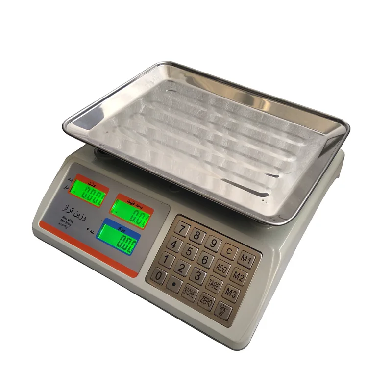 ترازوی فروشگاهی دیجیتال ۴۰ کیلویی بدون علمک – دقت ۲ گرم، نمایشگر دوطرفه، باتری پشتیبان