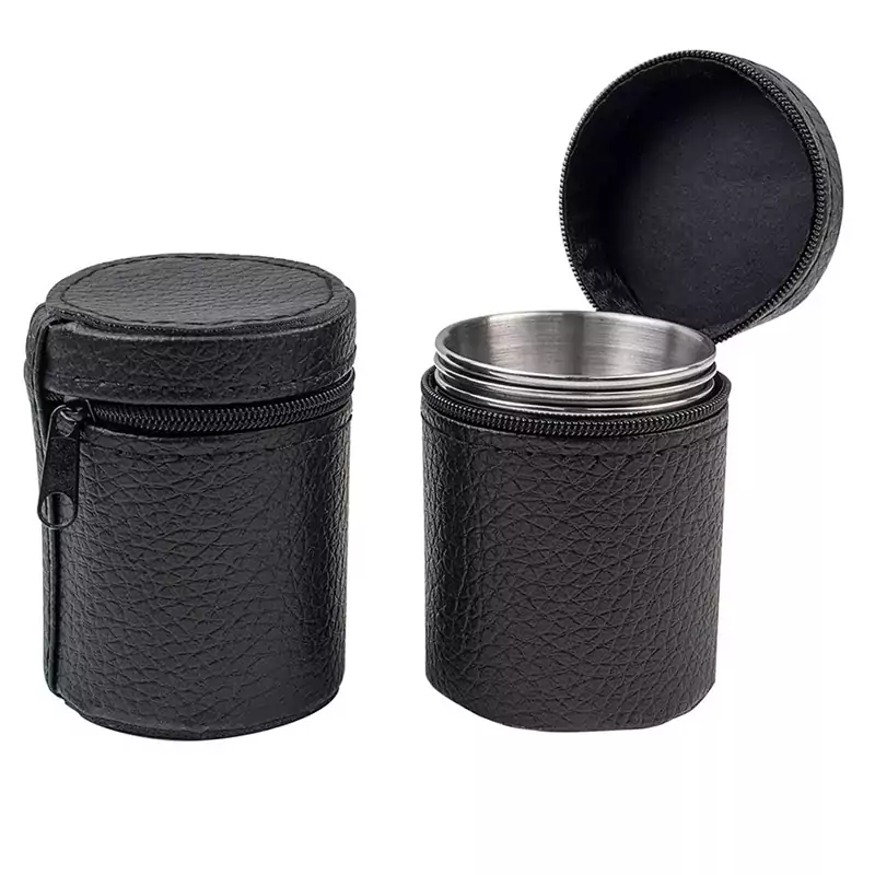 شات ۴ عددی استیل ضدزنگ با کیف چرمی سایز بزرگ | ست لیوان مسافرتی مقاوم و شیک