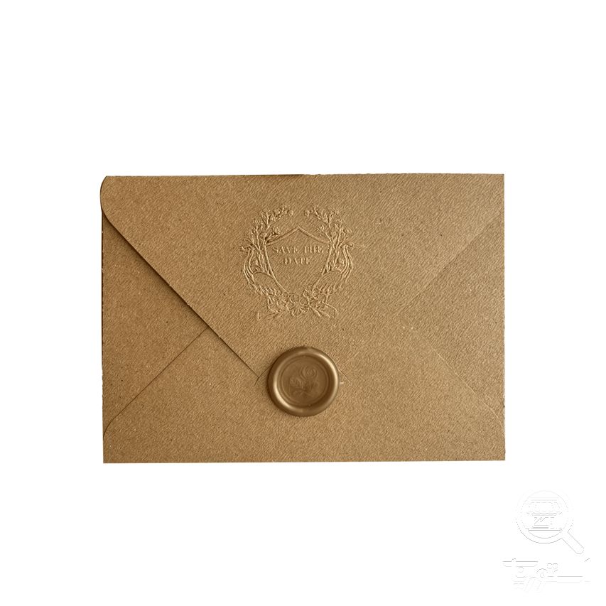کارت عروسی بیضی شکل قهوه ای با پاکت کلاسیک و مهر و موم 550
