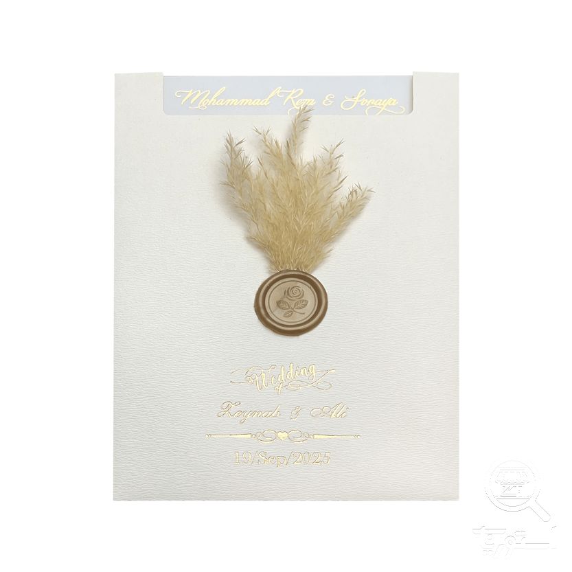 کارت عروسی طلقی لاکچری با پاکت کرمی طرح دار 547