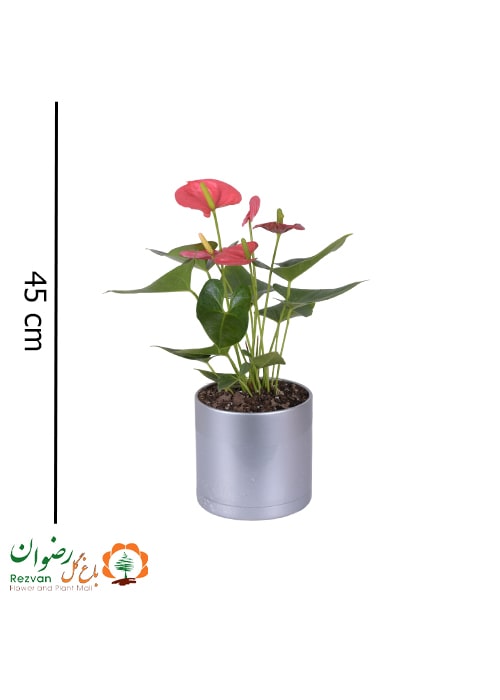 آنتوریوم با گلدان مهرنی نقره ای 17.5 (گلدان در رنگهای مختلف ) A19