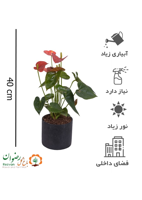 گیاه آنتوریوم با گلدان چرمی مشکی ساده A24