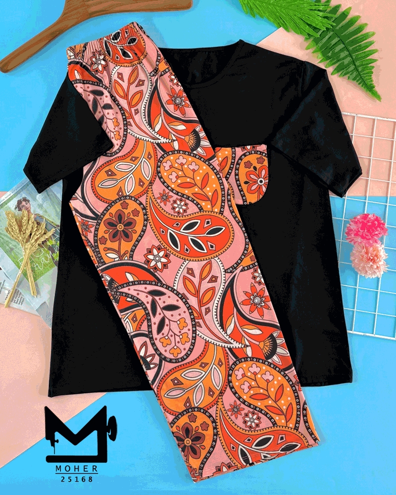 ست لباس راحتی سایز بزرگ طرح پوست ماری