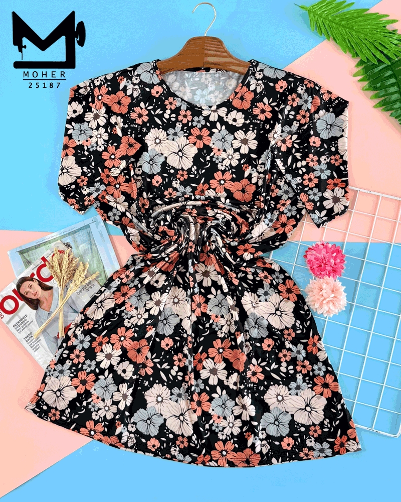 پیراهن زنانه سایز بزرگ گلدار مشکی