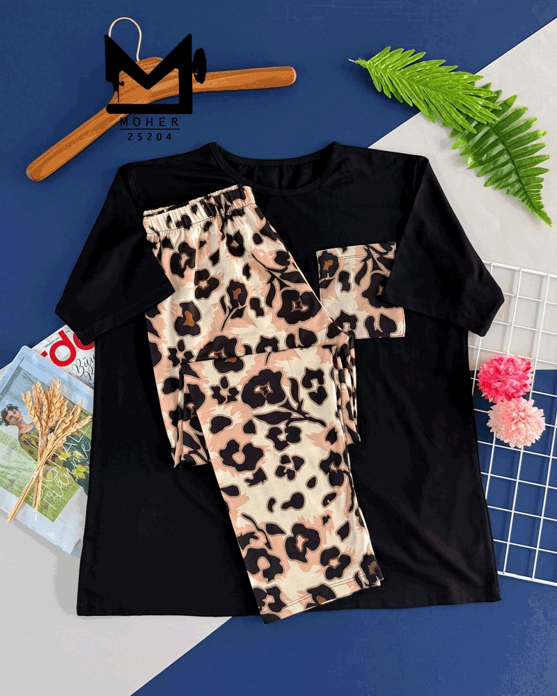 ست لباس راحتی زنانه سایز بزرگ طرح پلنگی