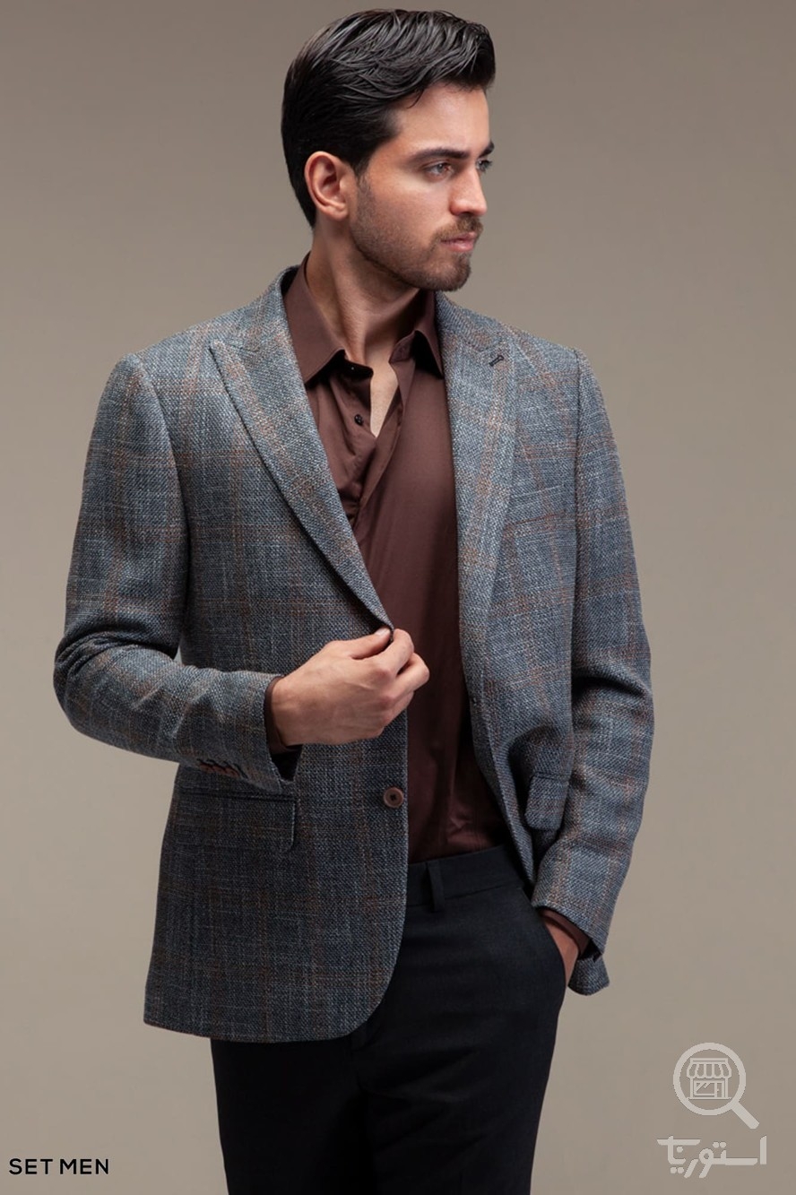 کت تک مردانه چهارخانه یقه بلیزر دودکمه دوچاک