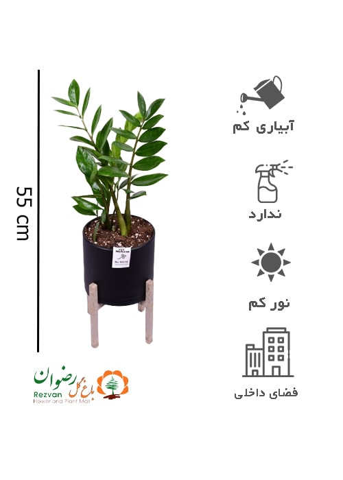 گیاه زامیفولیا با گلدان مهرنی 17.5 مشکی به همراه پایه ZZ5