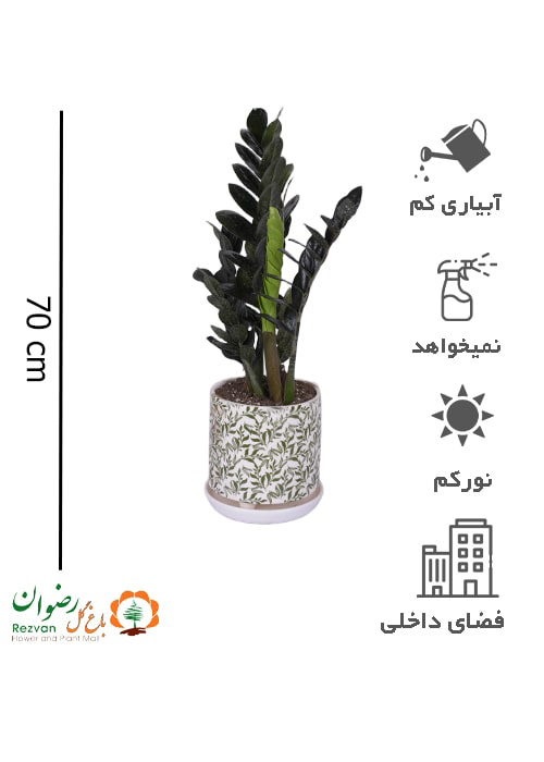 گیاه زامیفولیا بلک همراه گلدان سرامیک مدل برگی سایز4 کد BZZ72