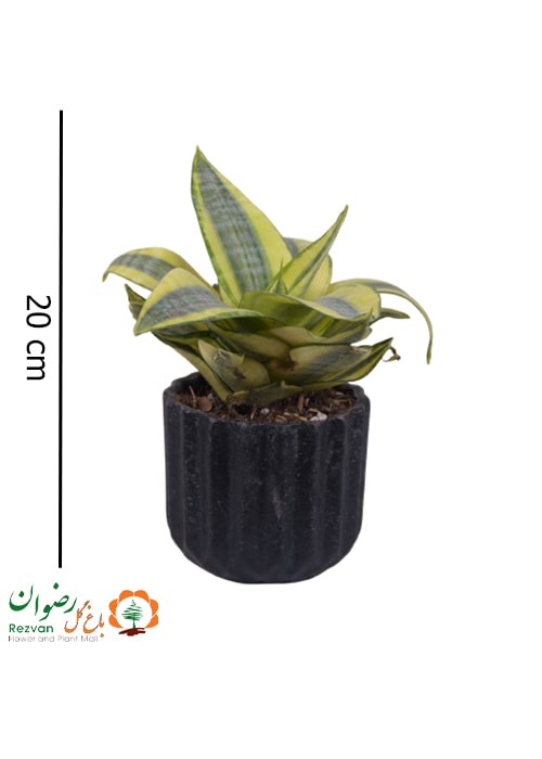 گیاه سانسوریا گلدن هانی همراه گلدان چرمی الماسی مشکی 1 کد GH19