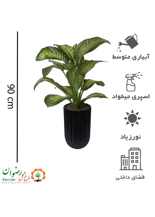 دیفن باخیا با گلدان سرامیک مشکی خط دار کد DD17