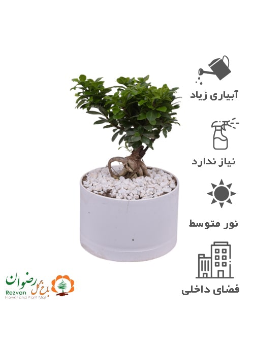 گیاه بنسای همراه گلدان مهرنی سفید 143/20 کدGB41