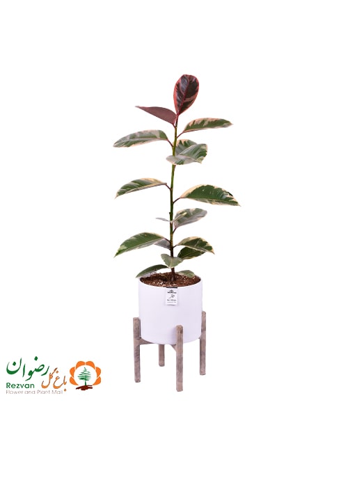 گیاه فیکوس شرابی با گلدان مهرنی 25 به همراه پایه fe2