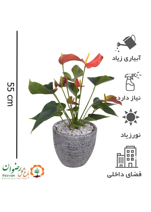 انتوریوم با گلدان سفالی طوسی A25