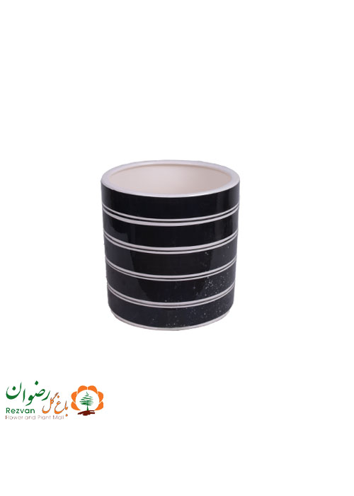 گلدان سرامیکی مشکی راه راه استوانه سایز 2
