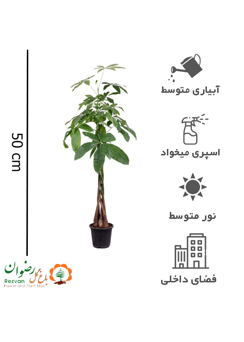 گیاه پاچیرا تنه بافت (گیاه پول) سایز کوچک با ارتفاع 40 الی 50 سانت