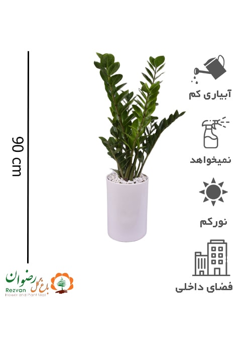 گیاه زامیفولیا سبز همراه گلدان سرامیک استوانه ای سفید کد ZZ60