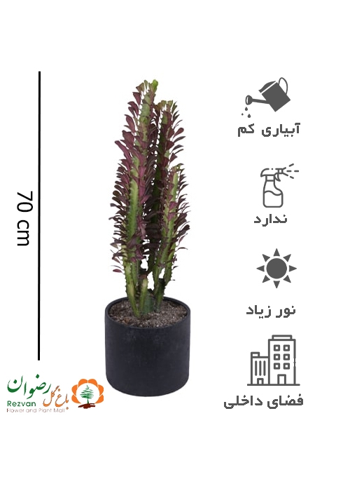 گیاه افوربیا قرمز به همراه گلدان سفالی چرمی ساده مشکی ET5