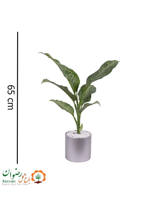 گیاه دیفن تیکی به همراه گلدان مهرنی نقره ای 15 DM1