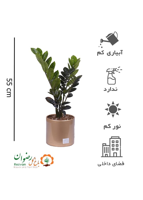 گیاه زامیفولیا بلک با گلدان مهرنی طلایی BZZ1