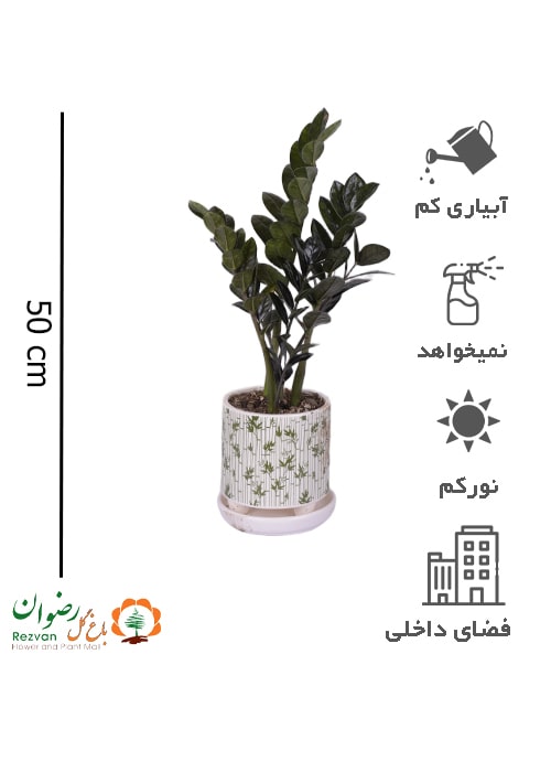 گیاه زامیفولیا بلک همراه گلدان سرامیک مدل بامبو سایز 3 کد BZZ70