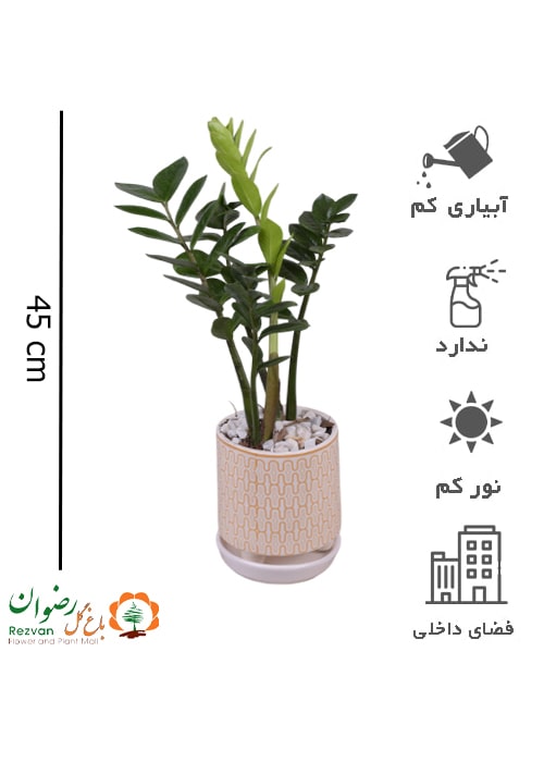 گیاه زامیفولیا سبز همراه گلدان سرامیک دو رنگ سفید طلایی 2 کد BZZ55