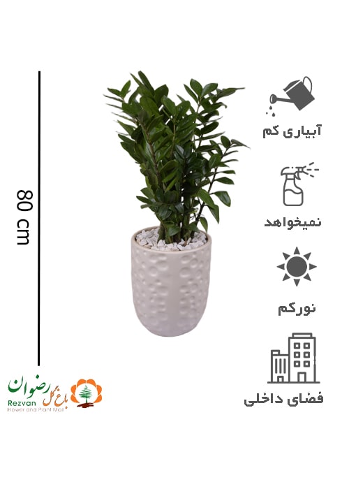 گیاه زامیفولیا سبز همراه گلدان سرامیک حباب دار سفید کد ZZ62