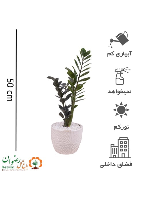گیاه زاموفیلیا بلک همراه گلدان سرامیکی خورشیدی سایز 1 کد ZZ35