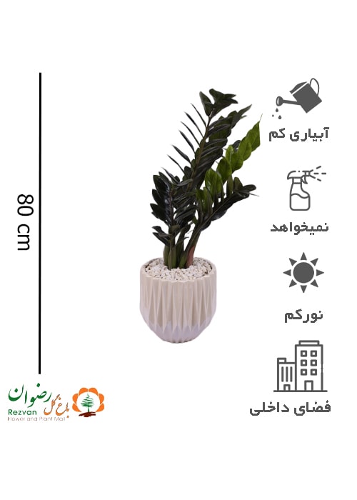 گیاه زامیفولیا بلک همراه گلدان سرامیک مدل کریستال سایز3 کد BZZ67