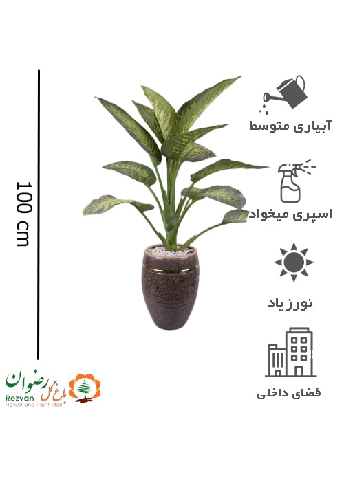 دیفن باخیا با گلدان سرامیک گرانیتی دور طلایی کد DD18