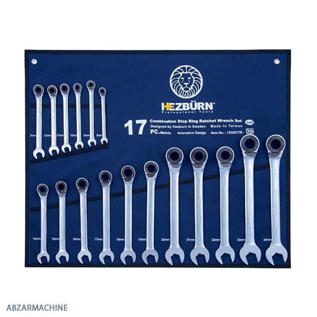 سری آچارجغجغه ای یکسرتخت یکسررینگ 17عددی HEZBURN