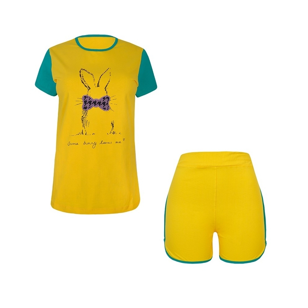 ست تیشرت و شلوارک نخی طرح عروسکی زنانه