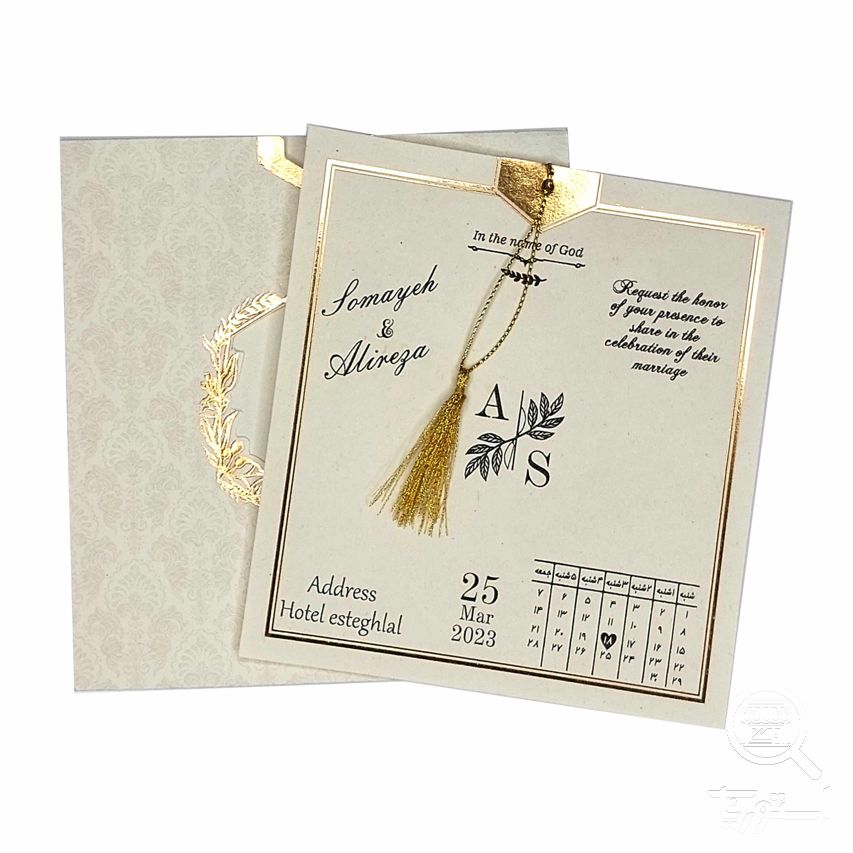 کارت عروسی مربعی مقوای کرمی با منگوله 410 و 510
