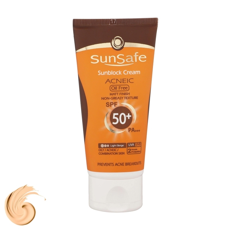 کرم ضدآفتاب و آنتی آکنه رنگی سان سیف مدل SPF50 مناسب پوست های چرب حجم 50 میلی لیتر