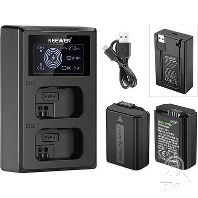کیت دو باطری و شارژر نیوور مدل NEEWER FW50 LCD