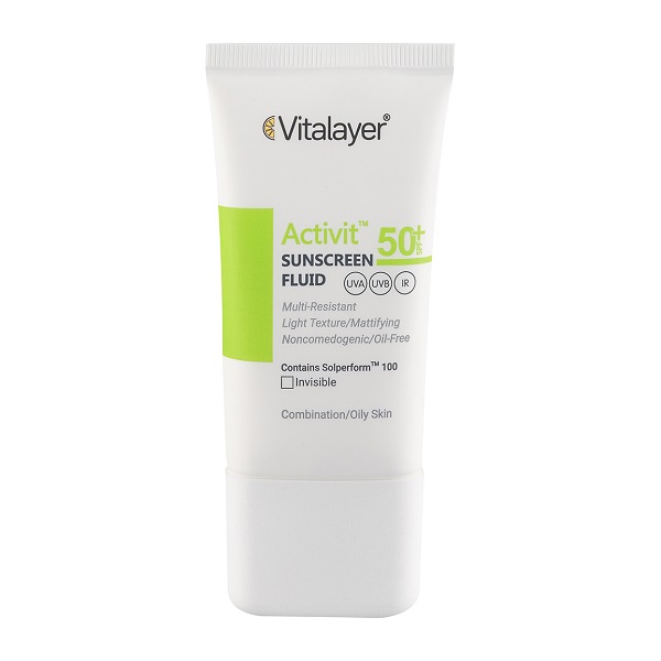 فلوئید ضد آفتاب بی رنگ ویتالیر مدل Activit با SPF50 مناسب پوست چرب حجم 50 میلی لیتر