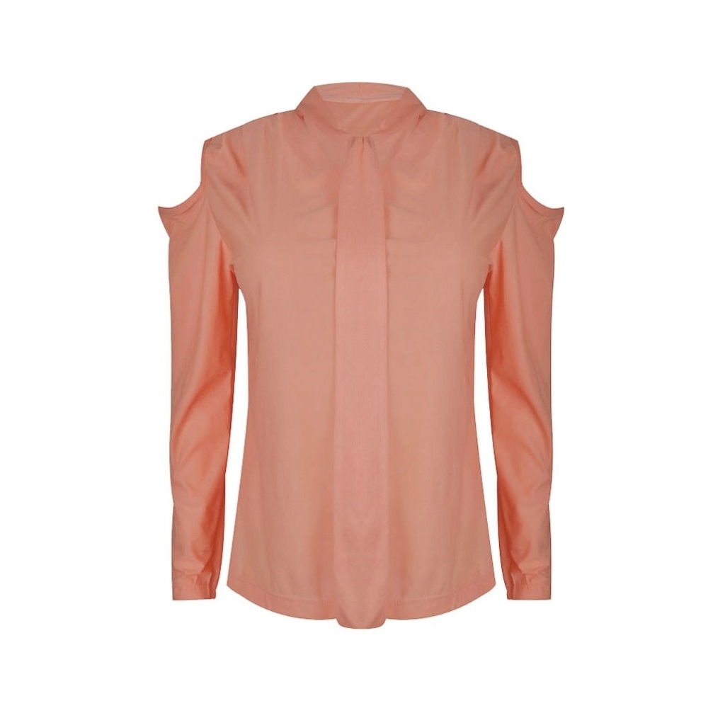تیشرت نخی آستین بلند یقه کرواتی زنانه
