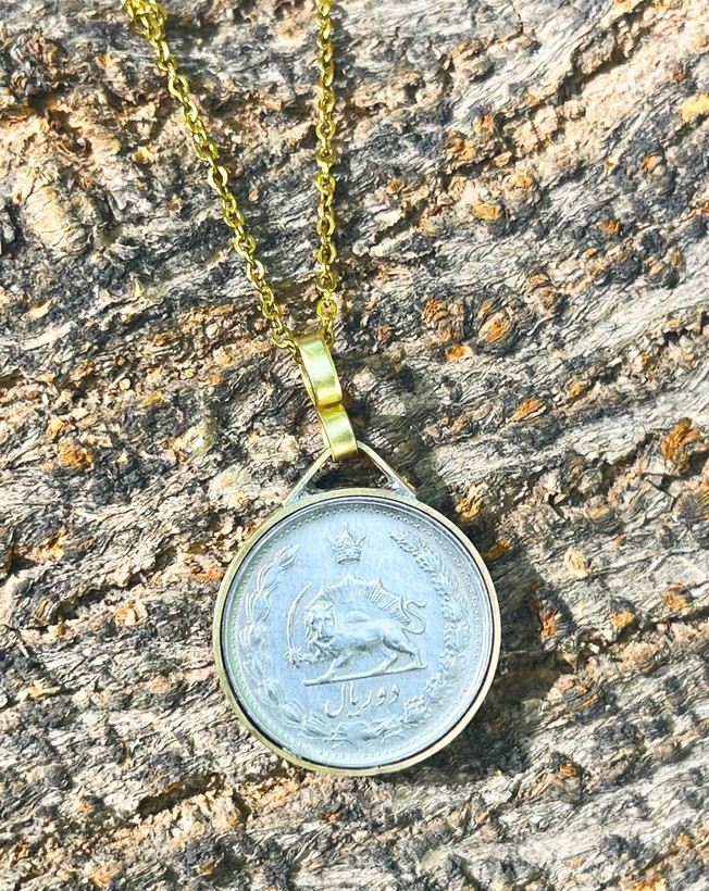 گردنبند زنانه و مردانه استیل گالری عزیزی مدل سکه شیر خورشید
