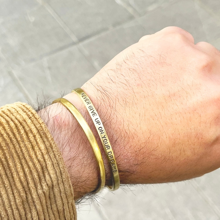 دستبند برنجی مردانه و زنانه گالری عزیزی مدل هرگز تسلیم نشو از آرزوهات { NEVER GIVE UP ON YOUR DREAM }