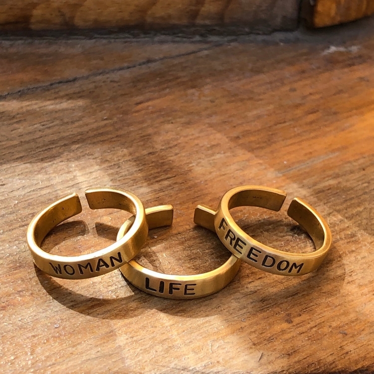 ست انگشتر دستساز برنجی گالری عزیزی مدل woman ,Life ,Freedom