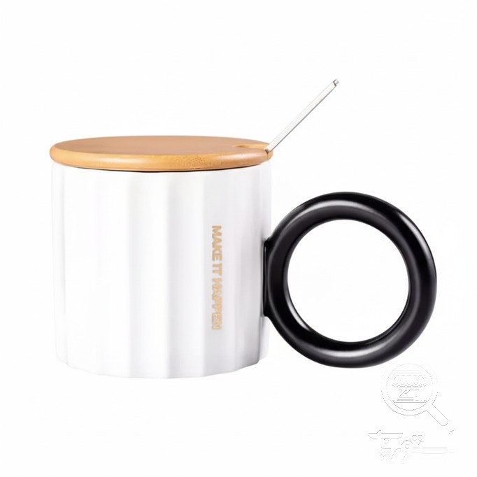 ماگ دسته حلقه درب چوبی دو رنگ پاستیلی | فنجان سرامیکی با طراحی خاص