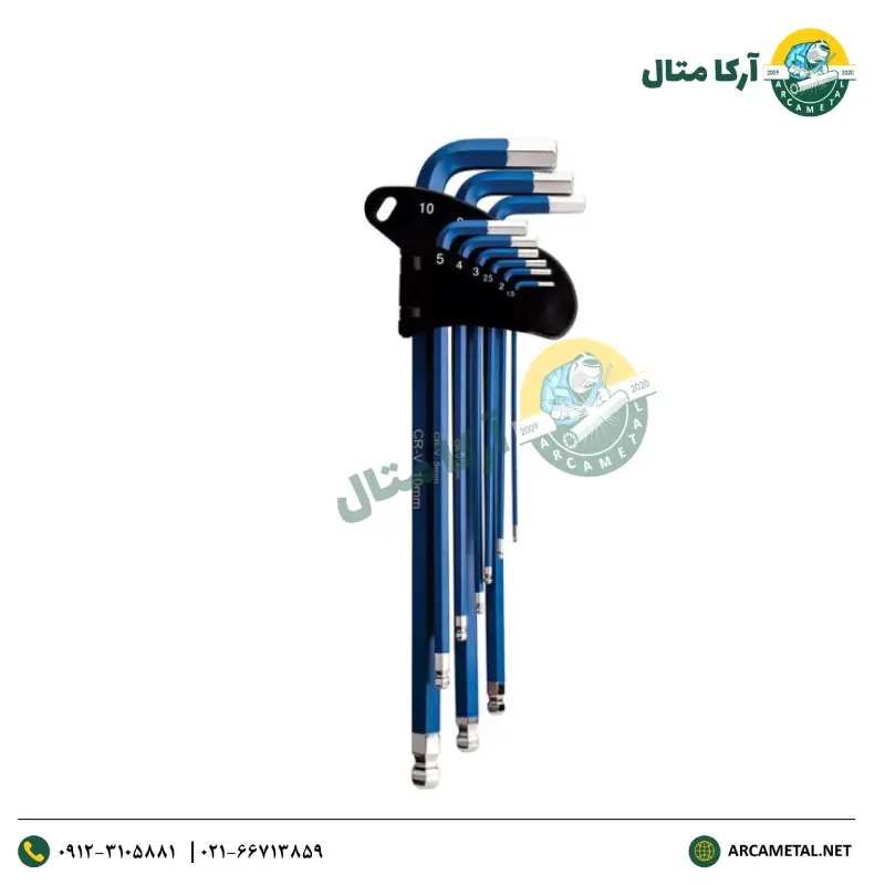 آچار آلن روکش دار دسته فوق بلند HT290 برند هیوندای سری شش گوش 9 عددی
