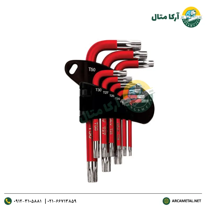 آچار آلن روکش دار دسته کوتاه HT295 برند هیوندای سری ستاره ای 9 عددی