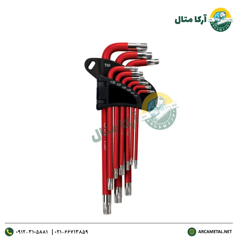 آچار آلن روکش دار دسته بلند HT390 برند هیوندای سری ستاره ای 9 عددی