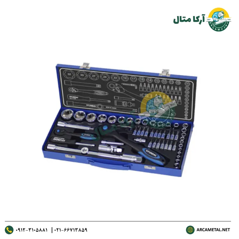 جعبه بکس 1.4 و 1.2 اینچ باسطح فول پولیش 56 پارچه HT-9156 برند هیوندای 56pcs