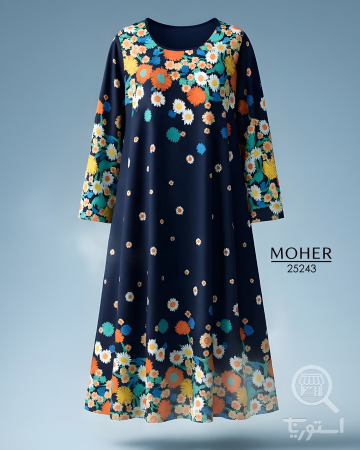 پیراهن ماکسی سایز بزرگ طرح گل زمینه سرمهای