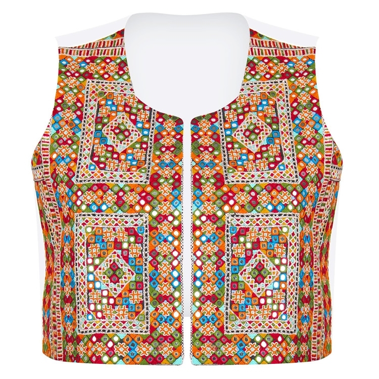 جلیقه زنانه سوزندوزی بلوچی روچ مدل آینه دوزی