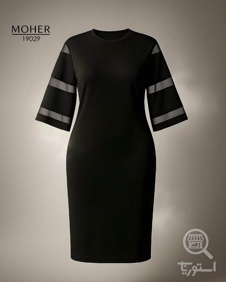 پیراهن مجلسی زنانه سایز بزرگ مشکی با آستین شیشهای