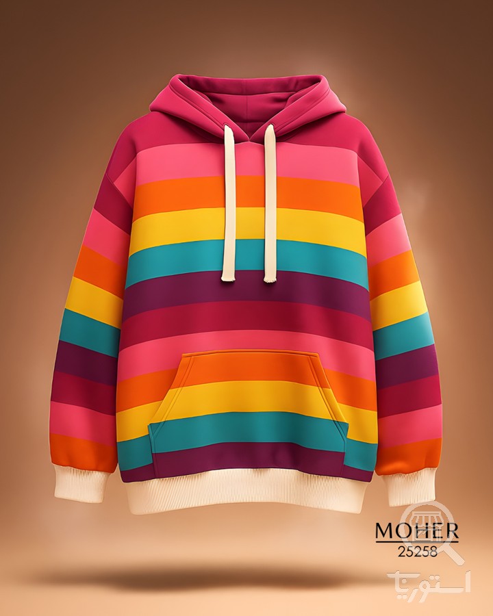 هودی زنانه سایز بزرگ طرح راهراه رنگینکمانی