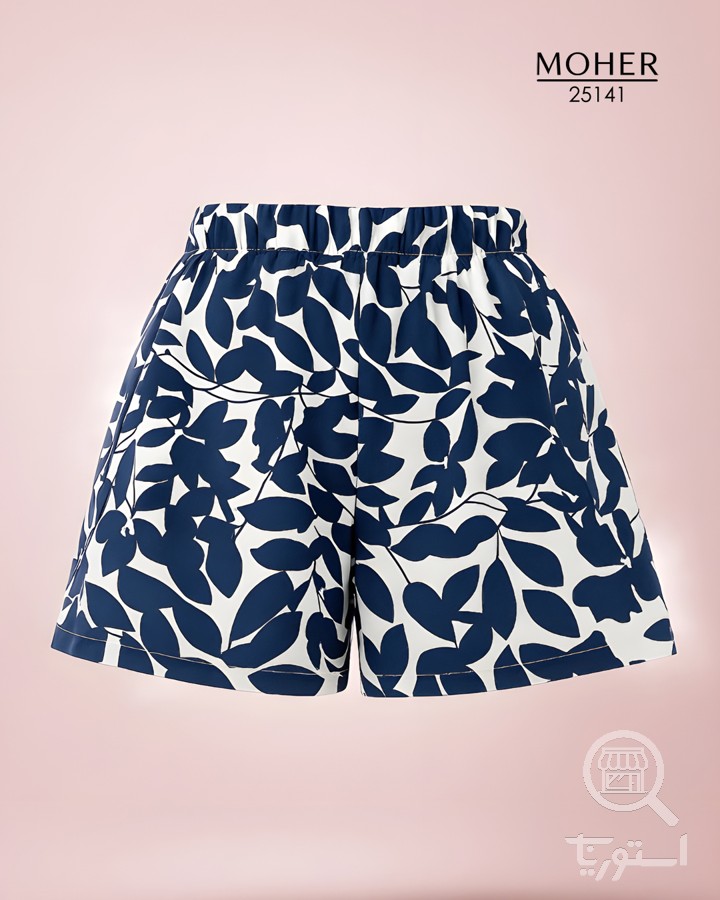 شورتک زنانه سایز بزرگ با طرح برگهای سرمهای