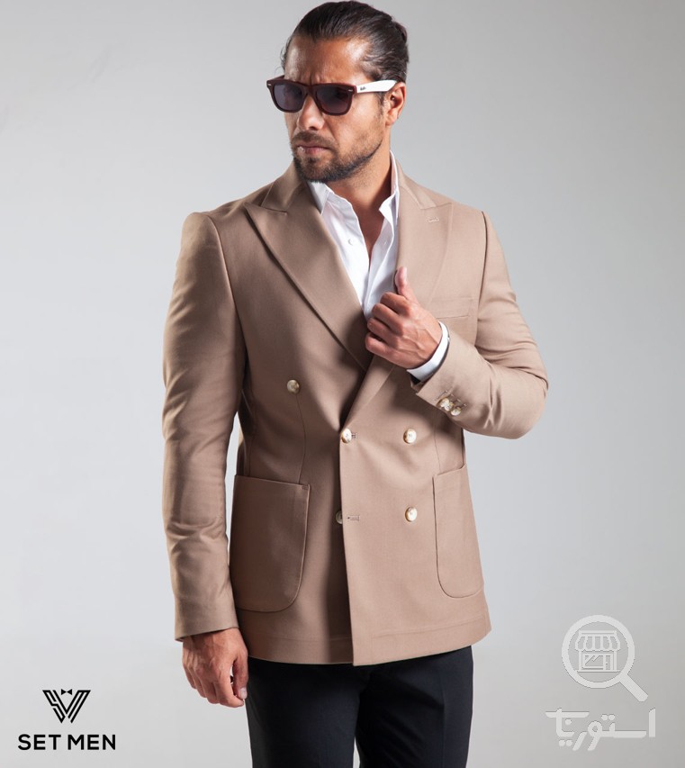 کت تک مردانه دبل برست یقه بلیزر نیم آستر شش دکمه دوچاک